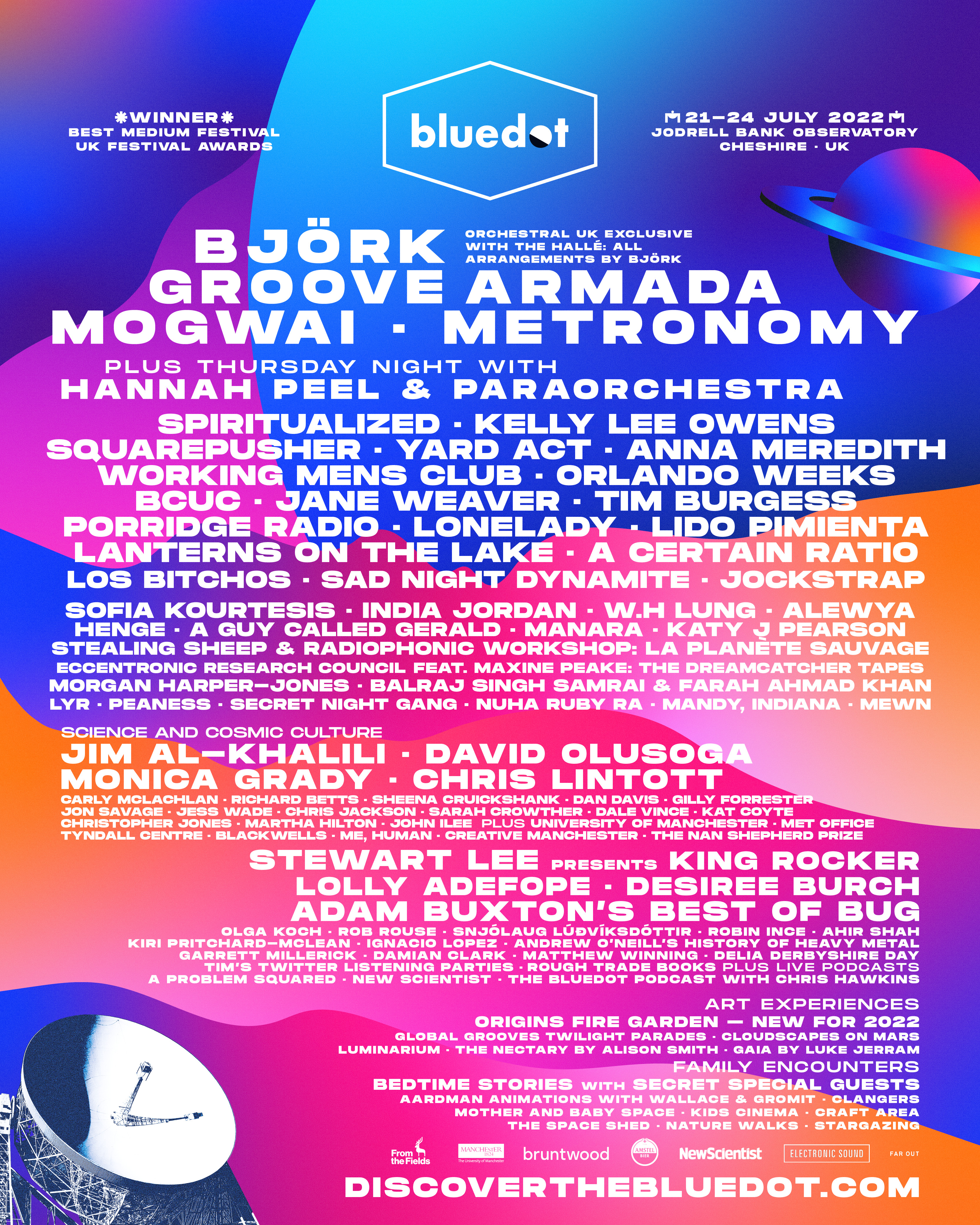 - A full ‘bluedot presents’ takeover of ‘Tim’s Twitter Listening Parties‘, featuring previous headliners New Order, Hot Chip and more taking part in tweetalong album listening events.